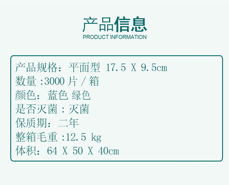 口罩尺寸:平面型 17.5cm*9.5 cm