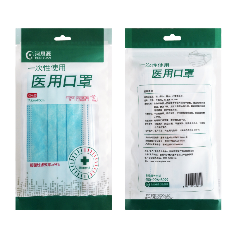 河思源一次性使用醫(yī)用口罩(精裝 10只/包)