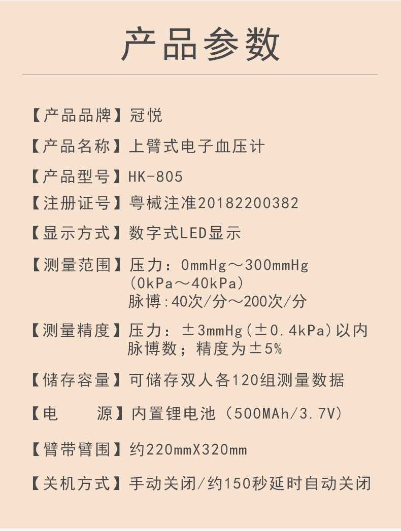 冠悅全自動電子血壓計HK-805