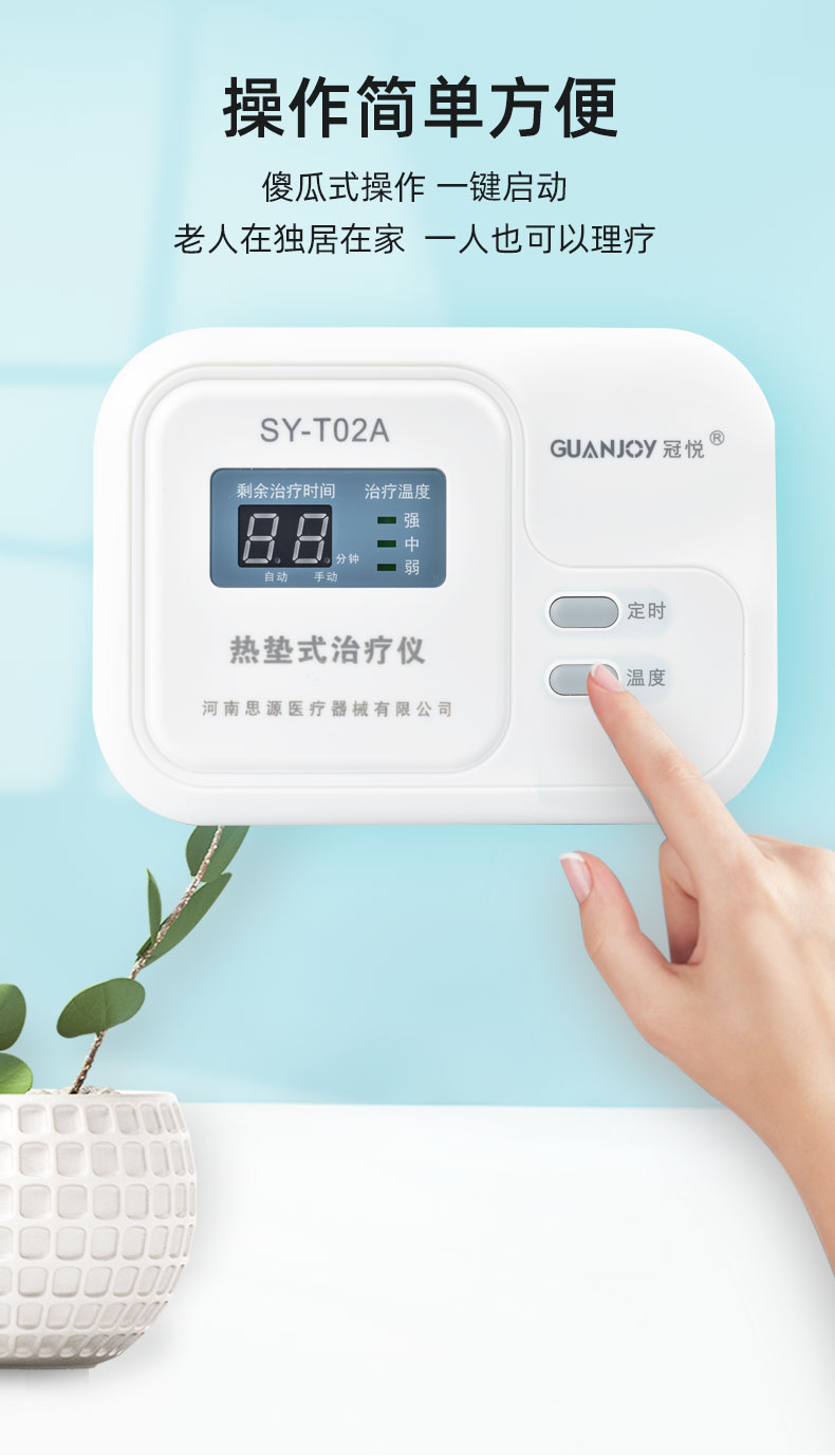 冠悅熱墊式治療儀一般適用于頸椎病,肩周炎,膝關(guān)節(jié)骨性關(guān)節(jié)炎,腰椎間盤突出癥,腰肌勞損等引起的疼痛,具有鎮(zhèn)痛,改善局部血液循環(huán)的作用。