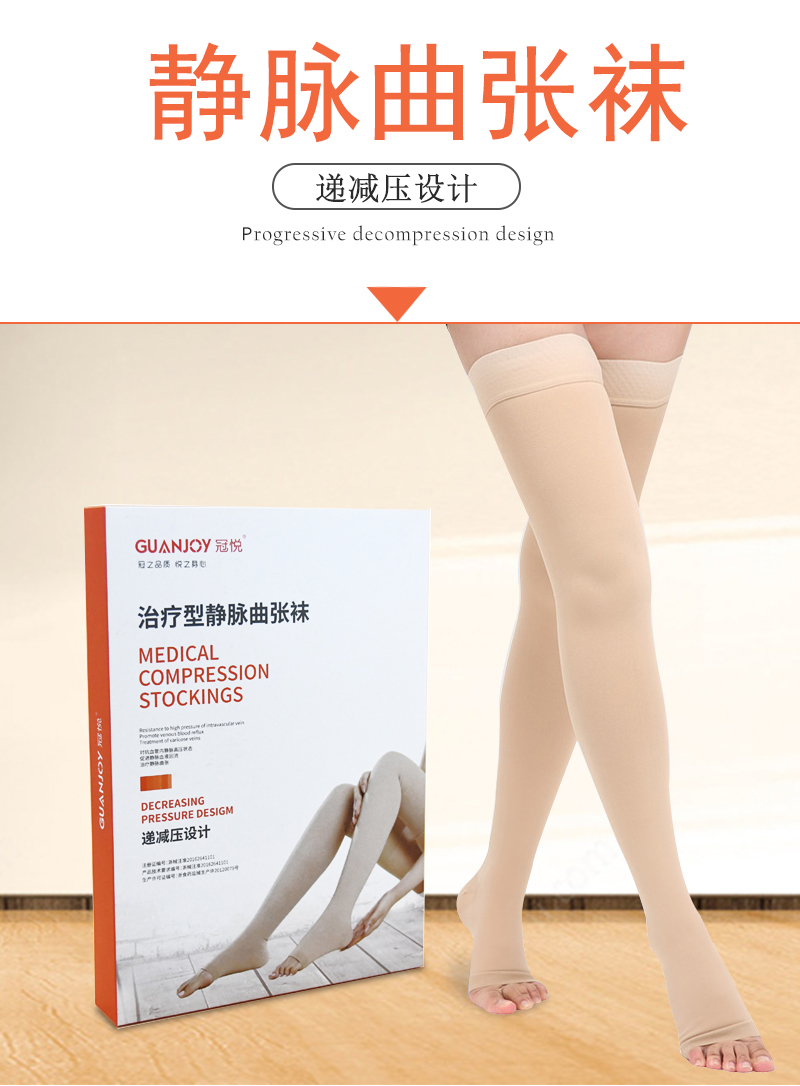 高壓(治療型,30-40mmHg)適用于嚴(yán)重的下肢靜脈曲張患者,靜脈血流淤滯,靜脈炎和其他靜脈疾病的患者。