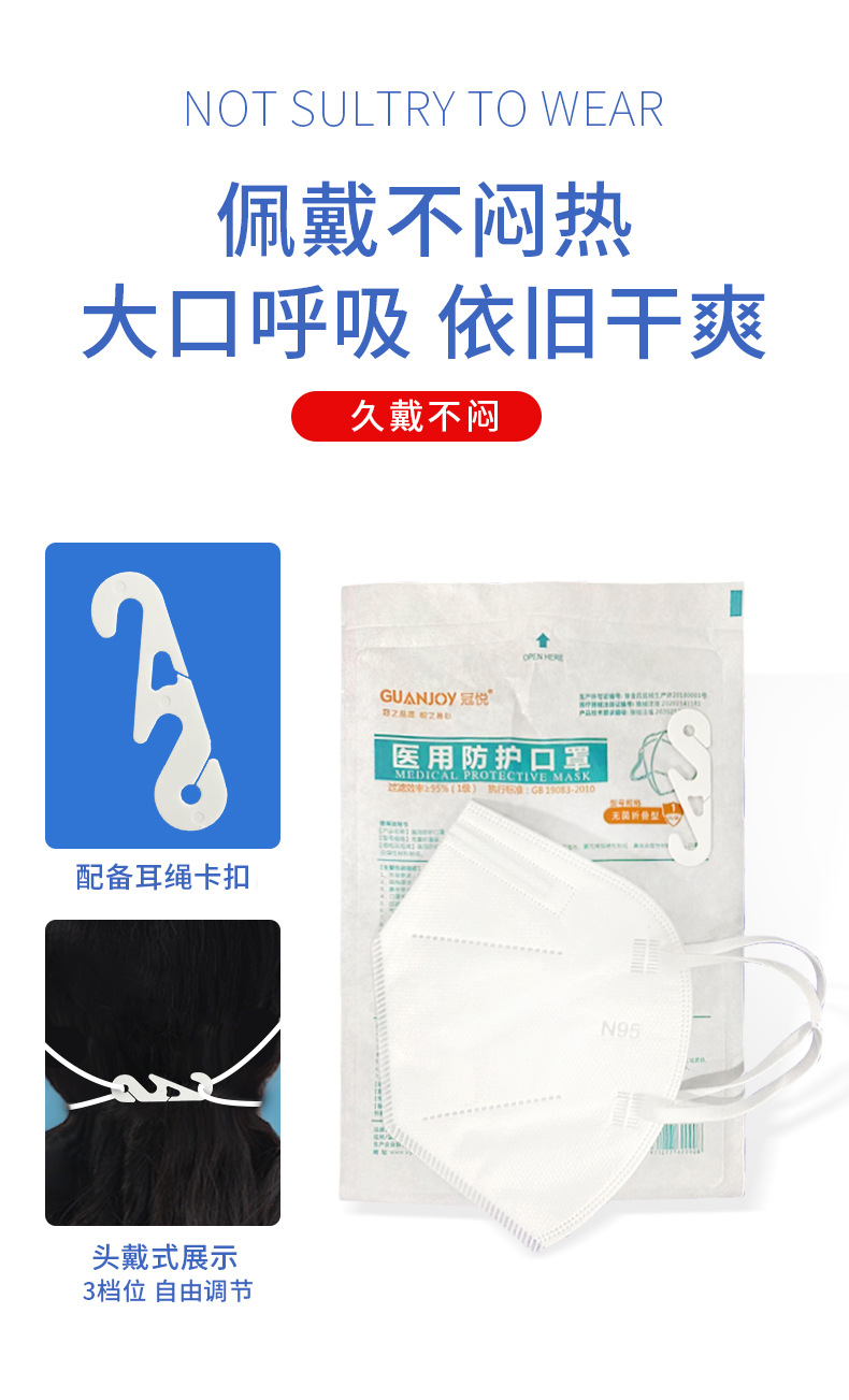 思源醫(yī)療器械溫馨提醒:注意佩戴N95口罩的時候,一般不要超過4到6個小時,因?yàn)槿绻L時間持續(xù)使用N95口罩,會引發(fā)呼吸不暢,人會不舒服。N95口罩跟KN95口罩的過濾效率一樣,防護(hù)能力在95%以上,對細(xì)菌和病毒有效的防護(hù)。