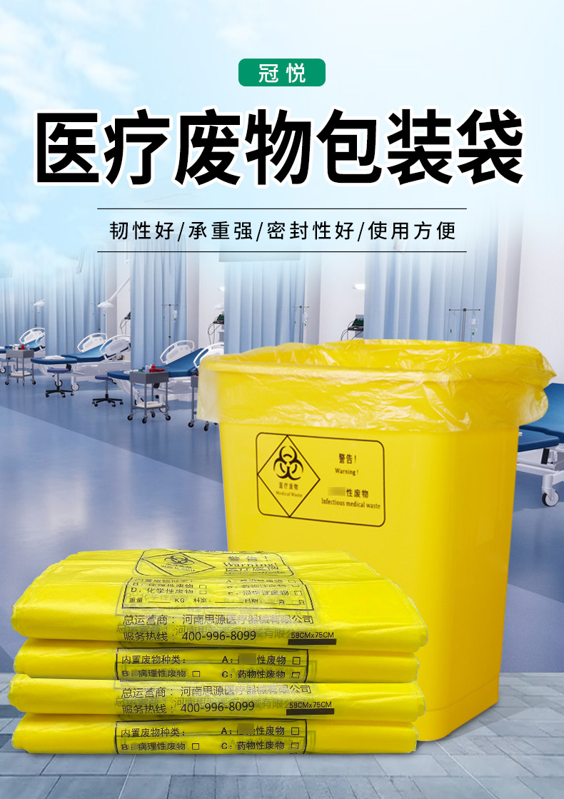 醫(yī)療廢物包裝袋要求:醫(yī)療廢物包裝袋要采用厚度符合要求的專用黃色聚乙烯(PE)包裝袋。