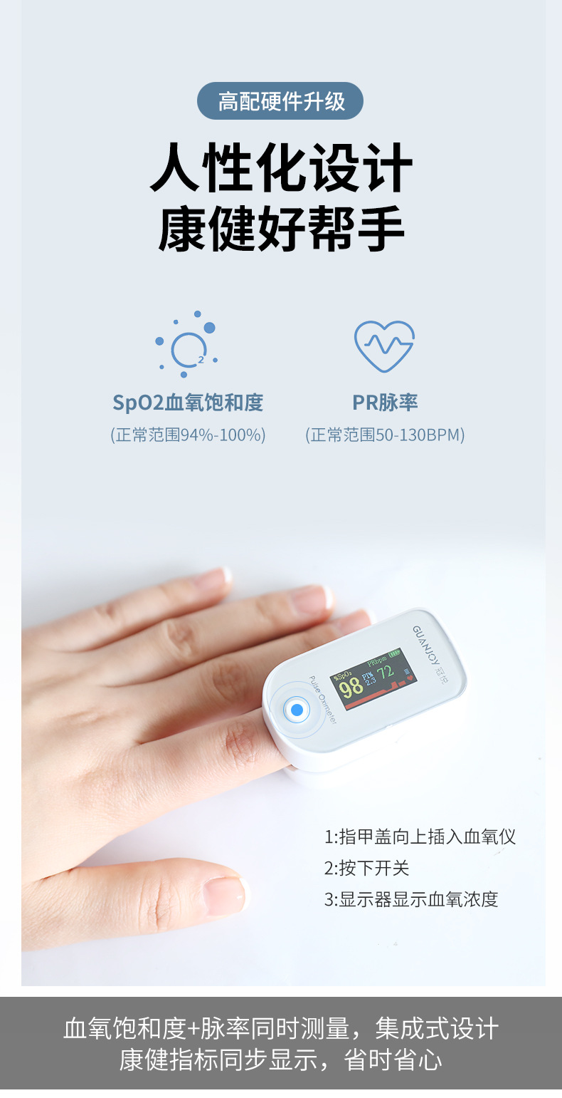 使用方便快捷:不用去醫(yī)院采血,不必承受皮肉之苦,只要往手指上輕輕一夾,3秒鐘你就能準確的看到你的身體健康狀況。