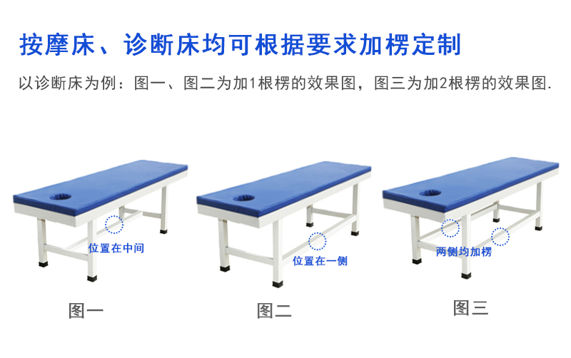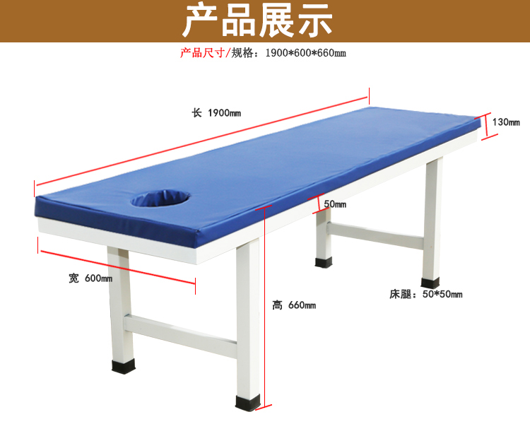 1、 按摩床床架采用40×80×1.0碳素鋼管焊接而成。