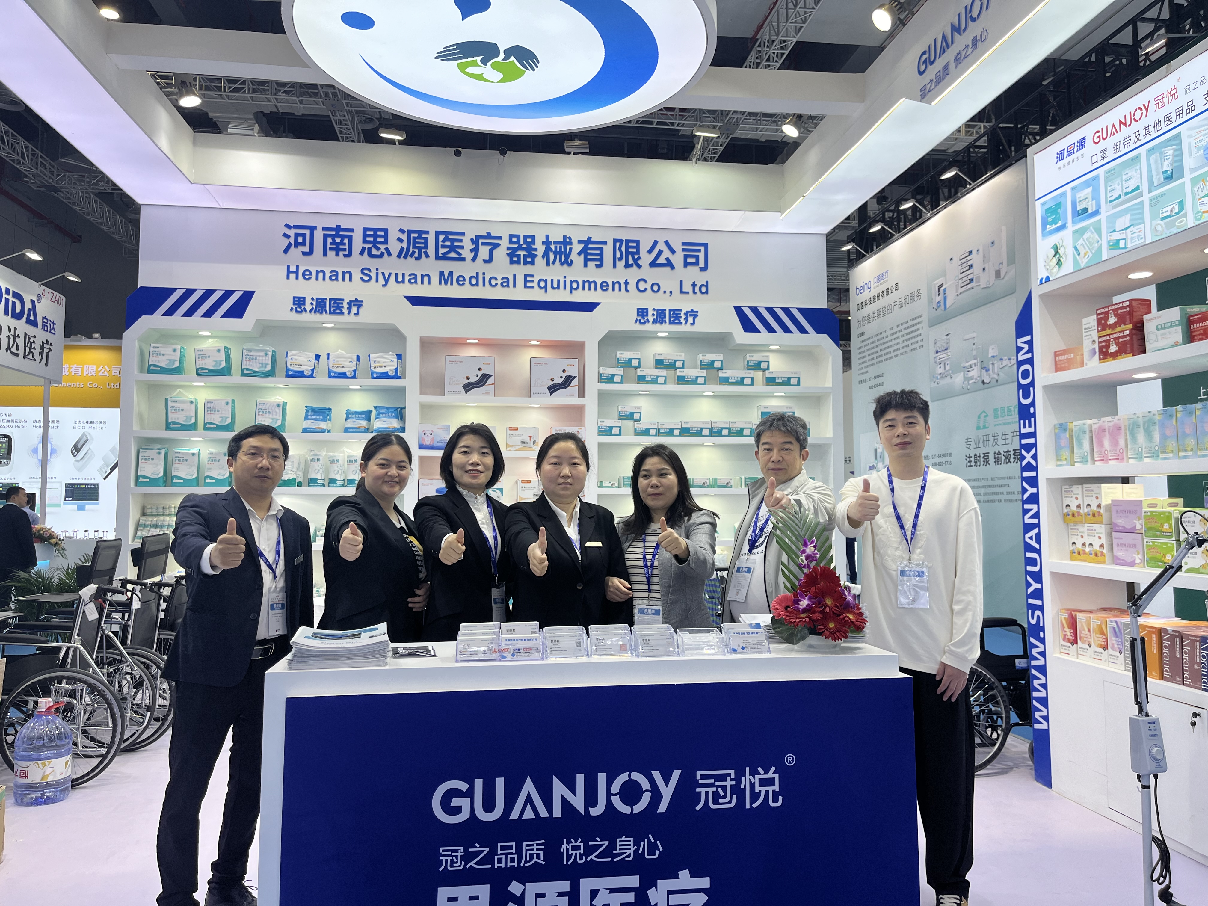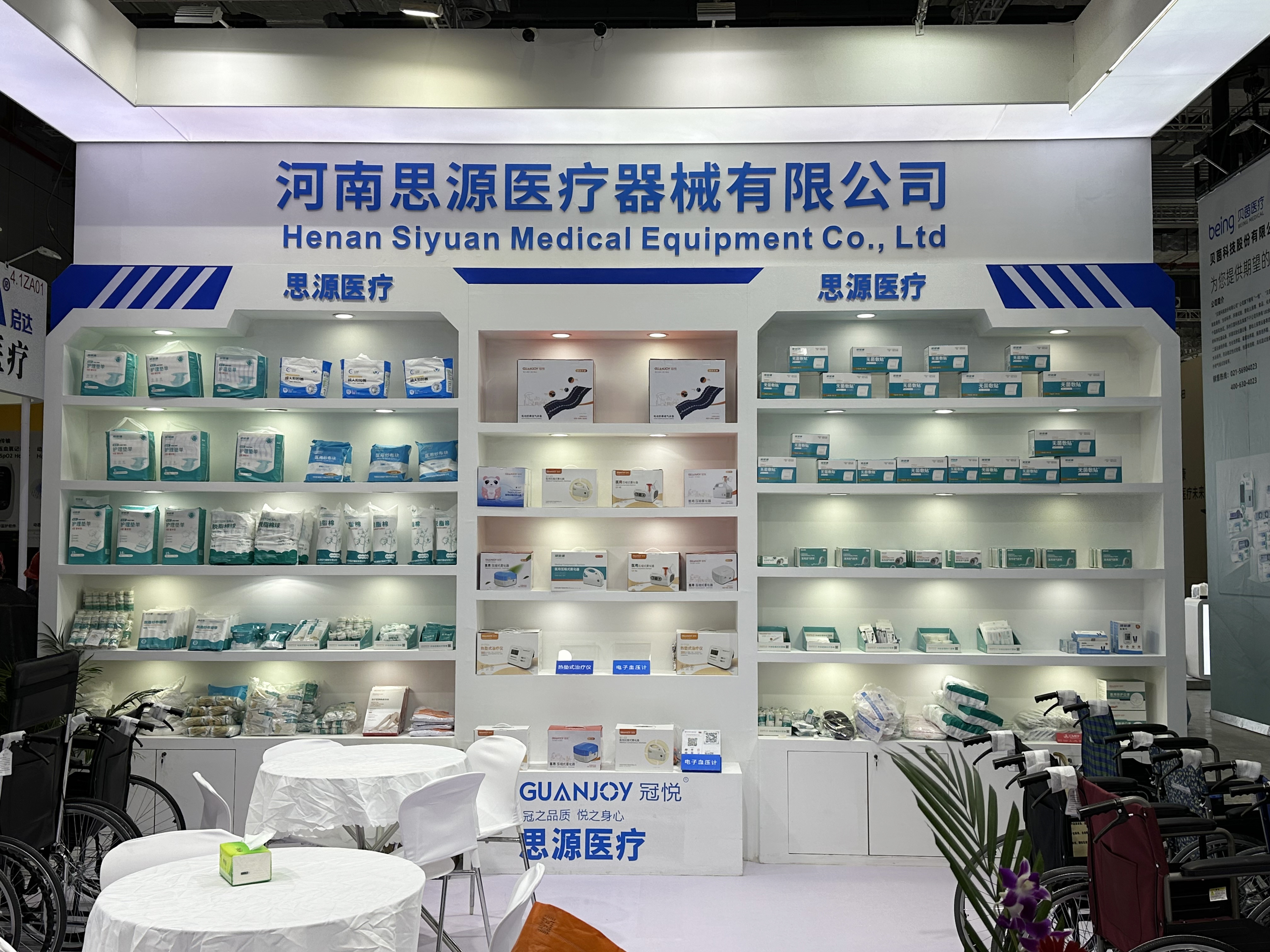 4.1館內(nèi),ZA08思源展廳非常整齊漂亮。步入展廳,思源醫(yī)療旗下冠悅、河思源等品牌產(chǎn)品齊聚,攜助行、耗材、防護(hù)、家庭護(hù)理、注塑、病床推車等6大系列的近百款產(chǎn)品亮相,為本次醫(yī)療器械博覽會(huì)增光添彩。
